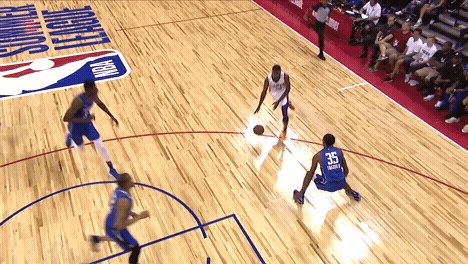 Bamba's ability to step out and drain a three is made even more effective by his draft combine-record 7-foot-10 wingspan. And as such, defensively he could be scary good. He blocked five shots in Monday's loss, including this one: